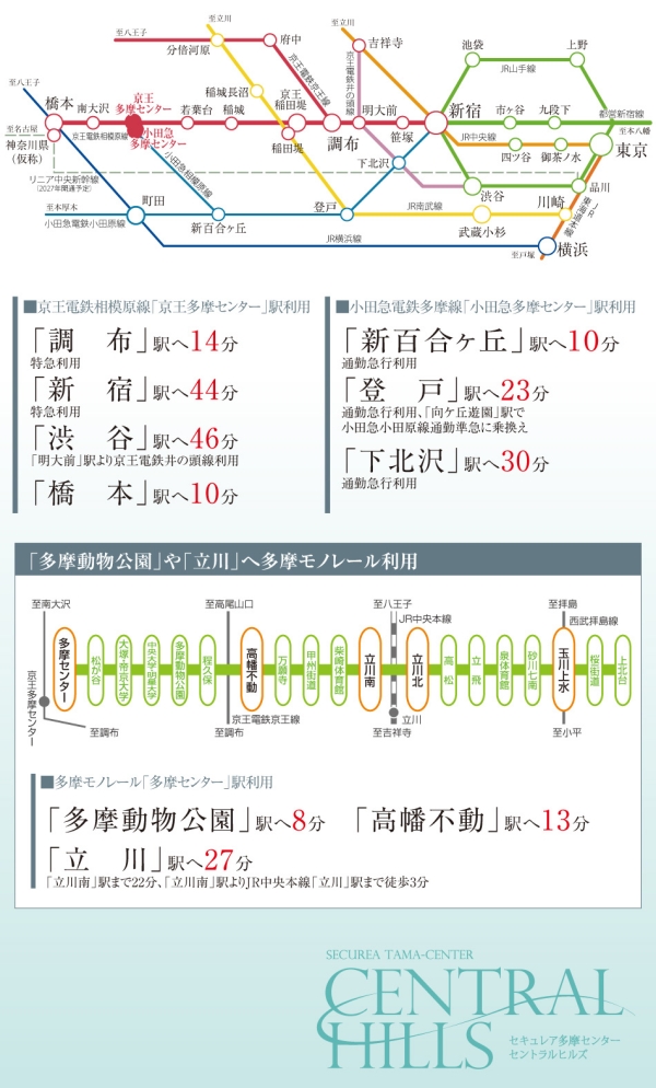 京王電鉄相模原線・小田急電鉄多摩線・多摩モノレールと3路線利用可能。