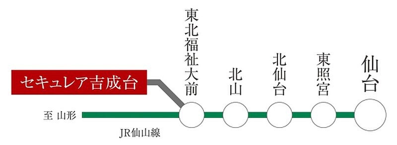 JR仙山線「東北福祉大前」駅 徒歩42分~45分 JR仙山線「仙台」駅 徒歩103分~107分 |