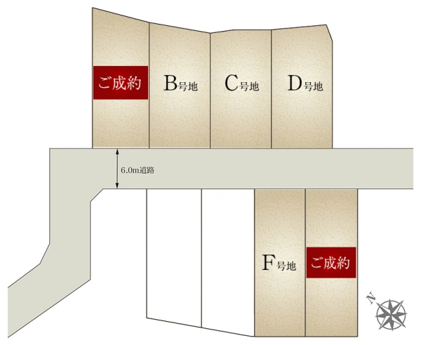 | 間取り | 3LDK(B号地、C号地、F号地)、4LDK(D号地) | 建物構造 | 軽量鉄骨2階建(4戸) |
