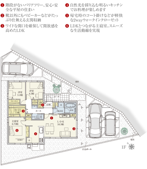 | 駐車場 | 3台 | 道路の幅員 | 5.0m(アスファルト舗装) |