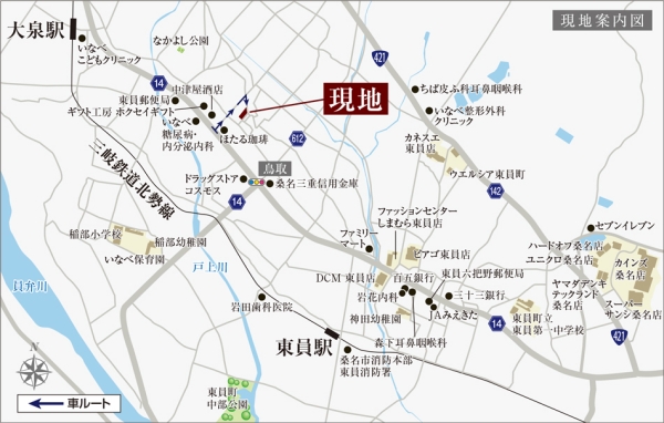 三岐鉄道北勢線「大泉」駅 徒歩18分~19分 三岐鉄道北勢線「東員」駅 徒歩25分~25分 |