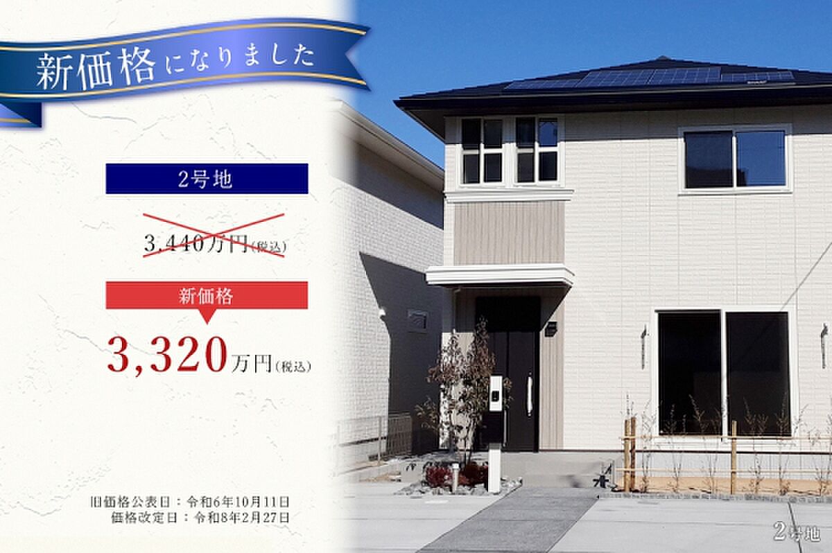 1号地:3,440万円→3,320万円、2号地:3,440万円→3,320万円(すべて税込)