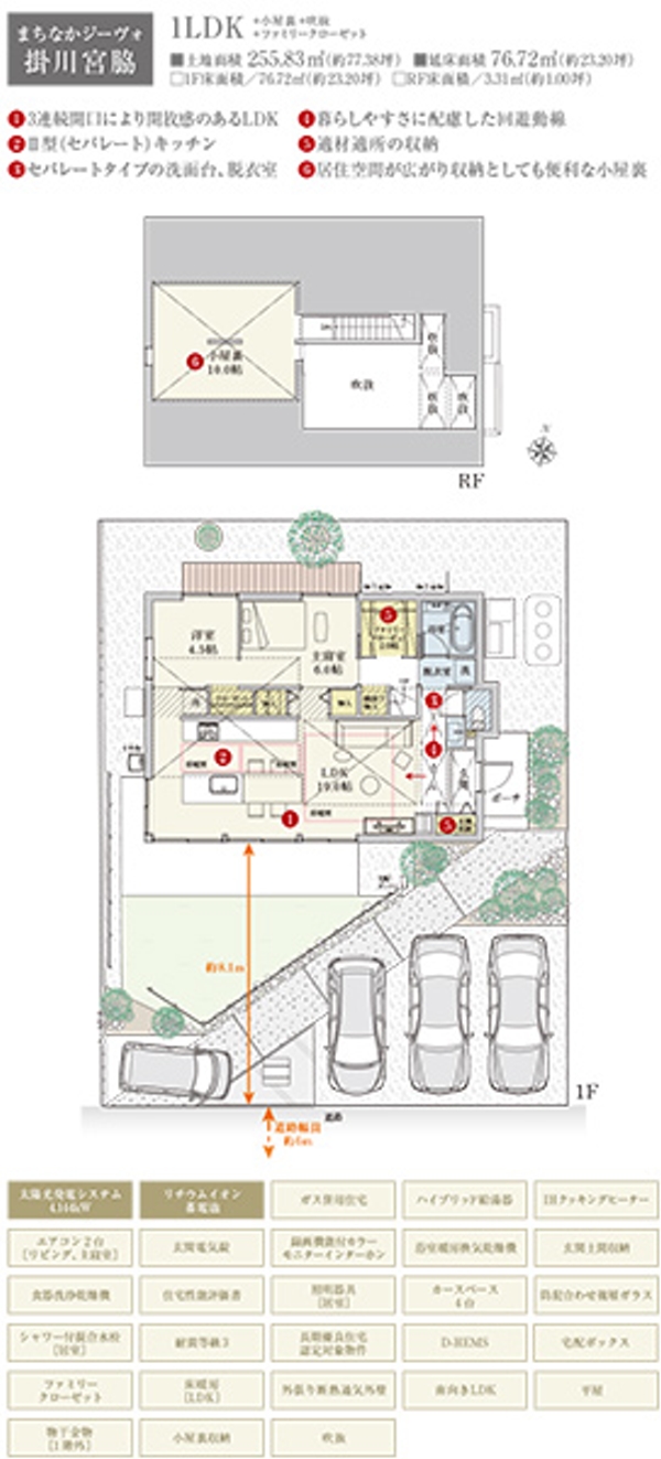 | 建物面積 | 76.72m2(A号地) | 土地面積 | 255.83m2(A号地) 私道負担なし |