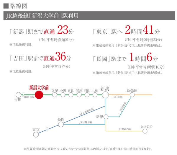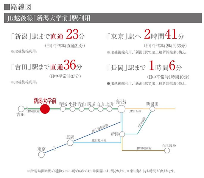 JR越後線「新潟大学前」駅まで徒歩18分で通勤や通学、県外への移動もしやすい