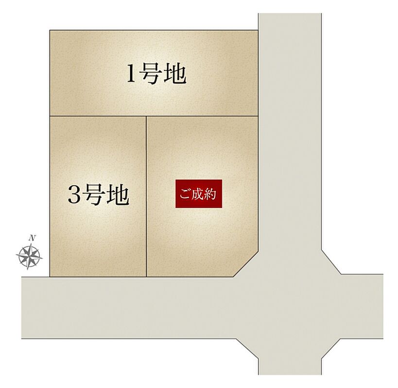 | 建物面積 | 97.62m2(1号地)、86.28m2(3号地) | 土地面積 | 125.16m2(1号地)、108.84m2(3号地) 全て私道負担なし |