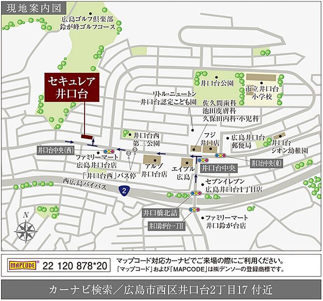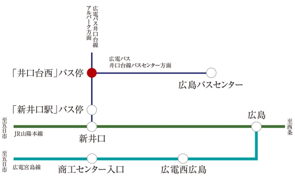 JR山陽本線「新井口」駅 徒歩25分~26分 広島電鉄宮島線「商工センター入口」駅 徒歩26分~26分 |