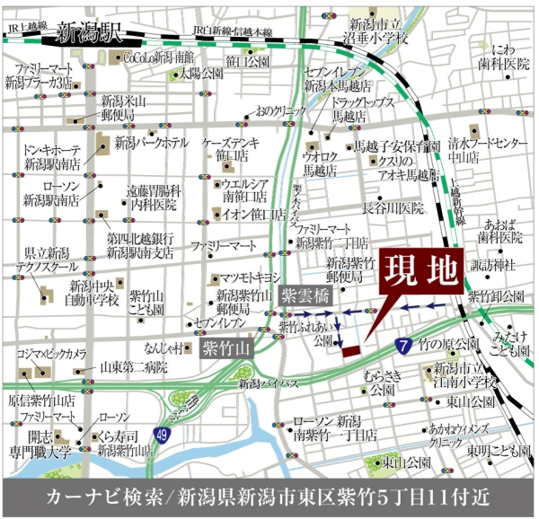 新潟バイパス紫竹山ICまで車で約4分の利便性の良い立地