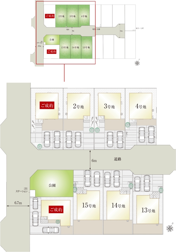 - 2LDK(14号地)、3LDK(2号地、3号地、4号地)、4LDK(13号地、15号地)