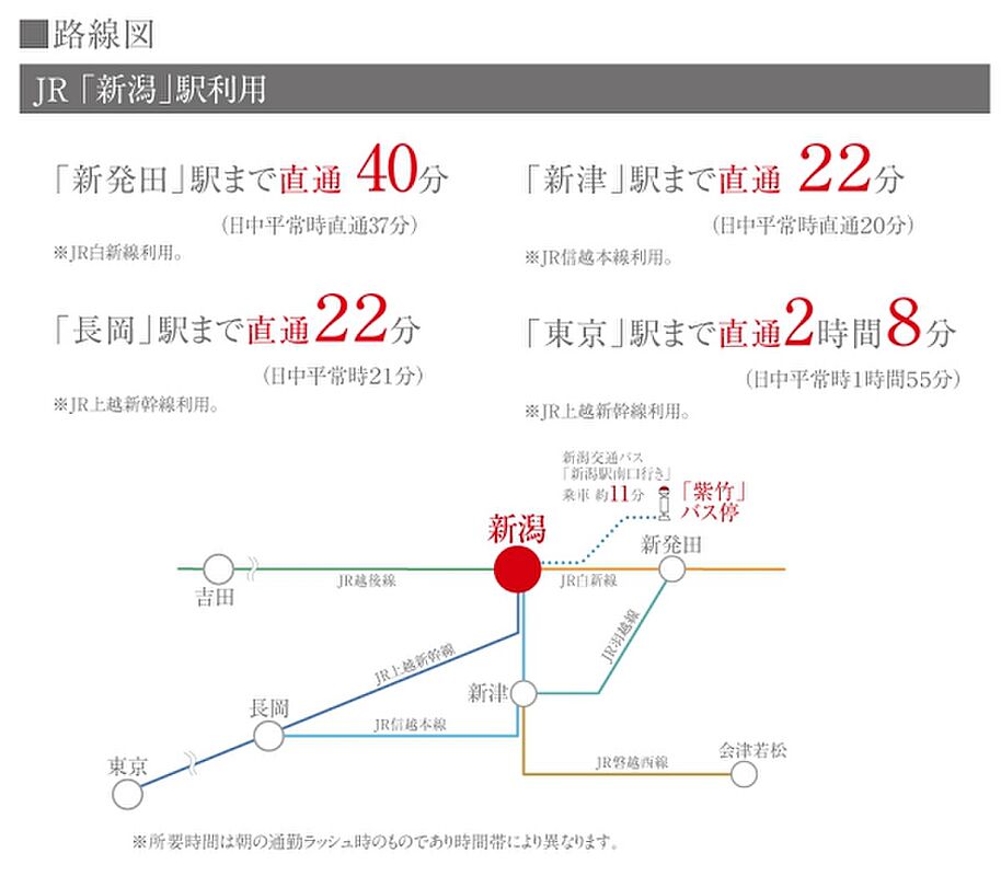 JR上越新幹線「新潟」駅 徒歩30分~31分 |