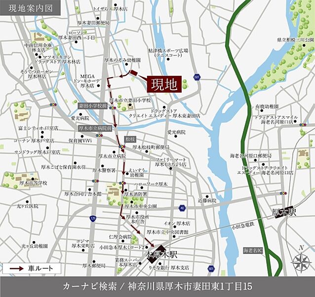 小田急小田原線「本厚木」駅 徒歩26分~27分 小田急小田原線「本厚木」駅 徒歩26分~27分 |