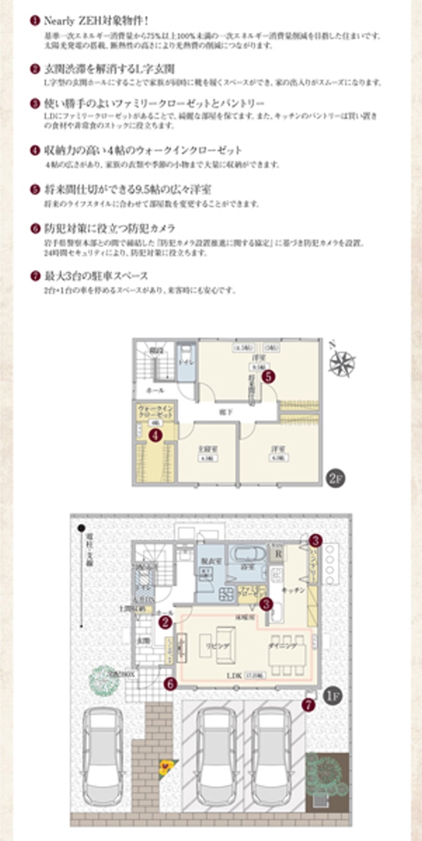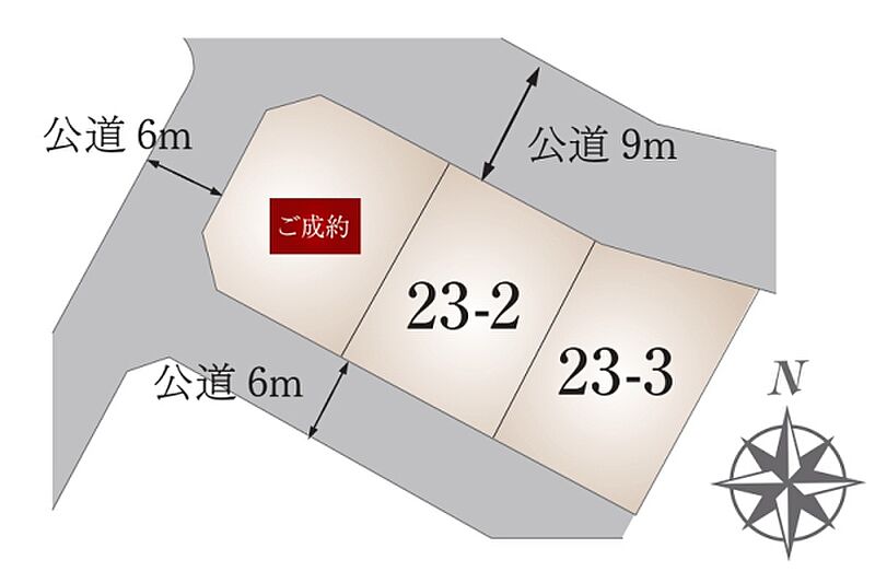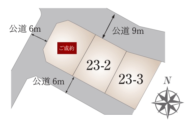 | 建物面積 | 102.68m2(23-2号地)、92.73m2(23-3号地) | 土地面積 | 171.32m2(23-2号地)、175.11m2(23-3号地) 全て私道負担なし |