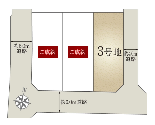 | 駐車場 | 3台 | 道路の幅員 | 4m・6m(アスファルト舗装) |