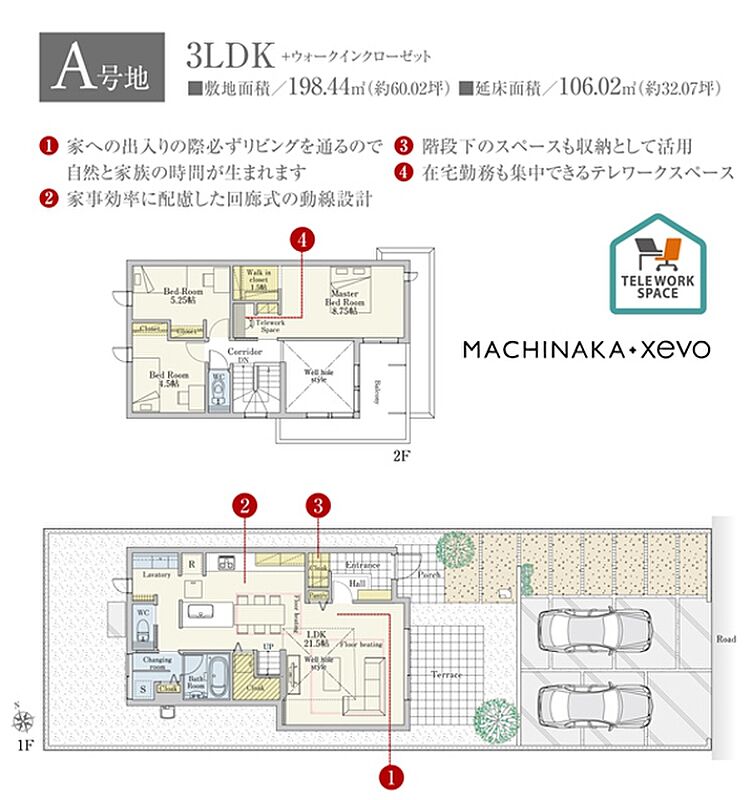 | 建物面積 | 106.02m2(A号地) | 土地面積 | 198.44m2(A号地) 私道負担なし |