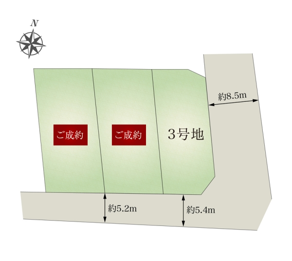 | 駐車場 | 3台 | 道路の幅員 | 5.4m、8.5m(アスファルト舗装) |