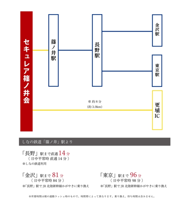 JR篠ノ井線「篠ノ井」駅 徒歩10分~10分 JR北陸新幹線「長野」駅 徒歩117分 |