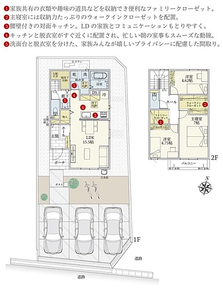 駐車スペース3台分、収納豊富な3LDKの住まい。