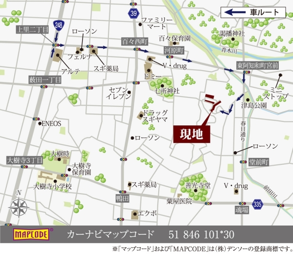 - ※地図、航空写真情報および地形ならびに周辺のお店・施設は、必ずしも現況を表すものではありません。
