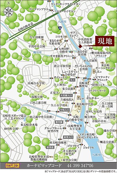 - ※地図、航空写真情報および地形ならびに周辺のお店・施設は、必ずしも現況を表すものではありません。