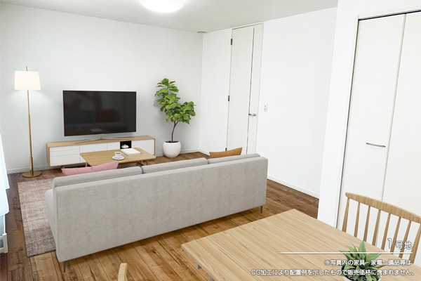 - ※完成予想図やCG合成画像は、門塀・植栽・庭・外観等、実際とは多少異なる場合があります。