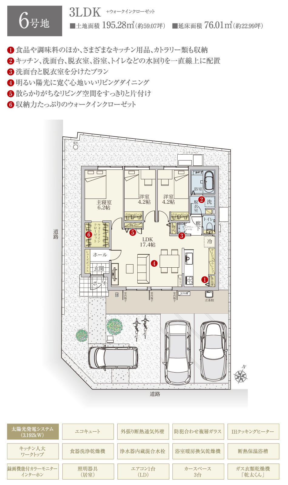 6号地 間取り 3LDK 価格 4390万円 建物面積 76.01 土地面積 195.28 -
