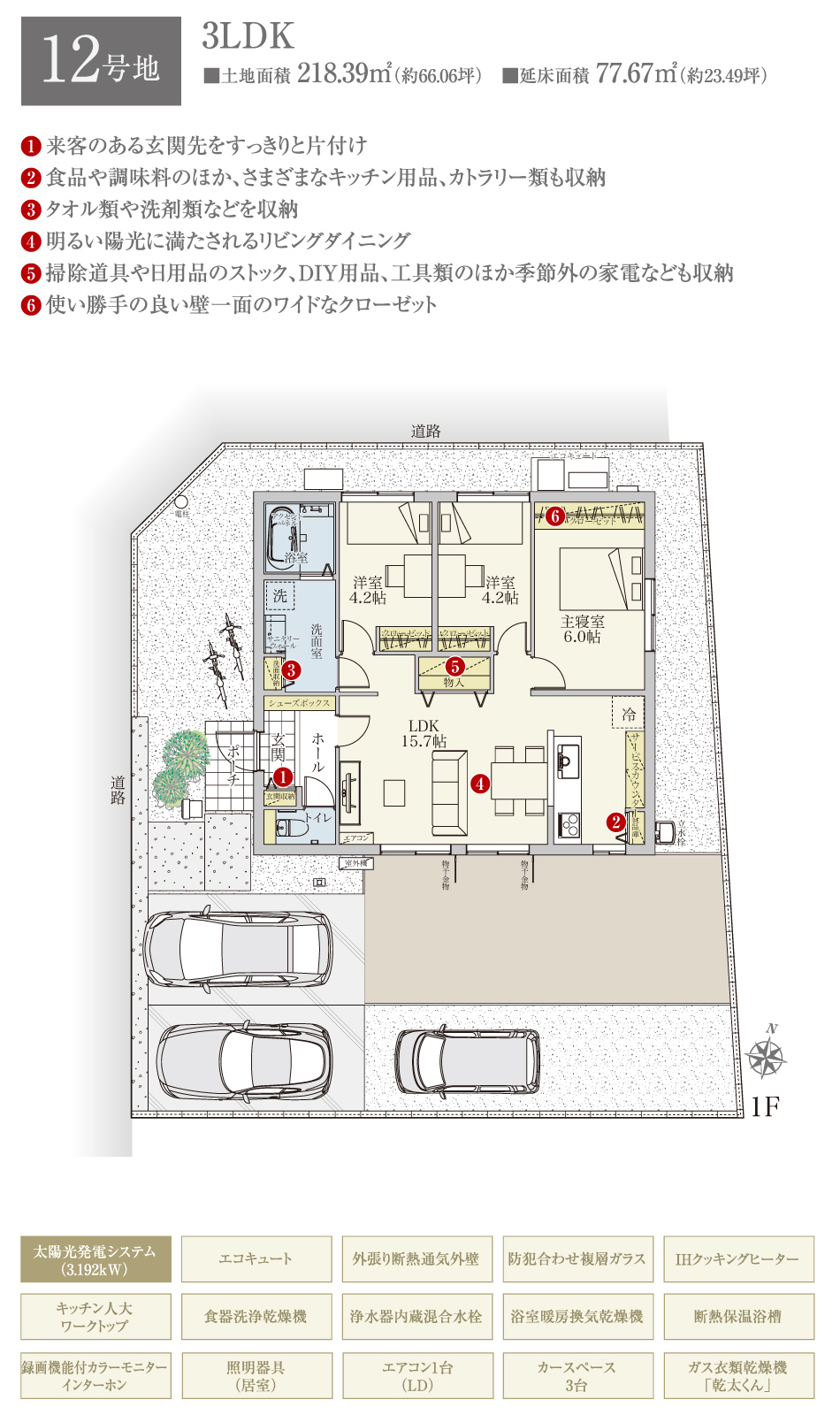 12号地 間取り 3LDK 価格 4290万円 建物面積 77.67 土地面積 218.39 -