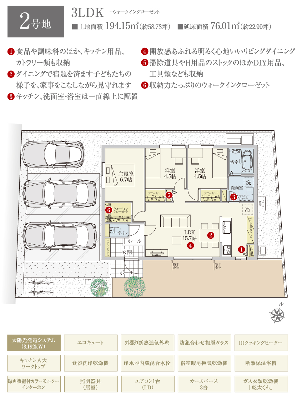 2号地 間取り 3LDK 価格 3980万円 建物面積 76.01 土地面積 194.15 -
