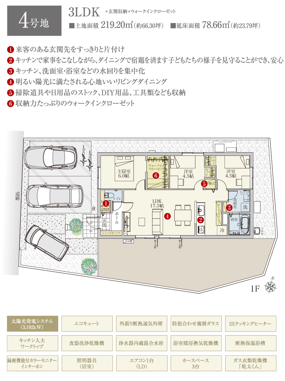 4号地 間取り 3LDK 価格 4260万円 建物面積 78.66 土地面積 219.2 -