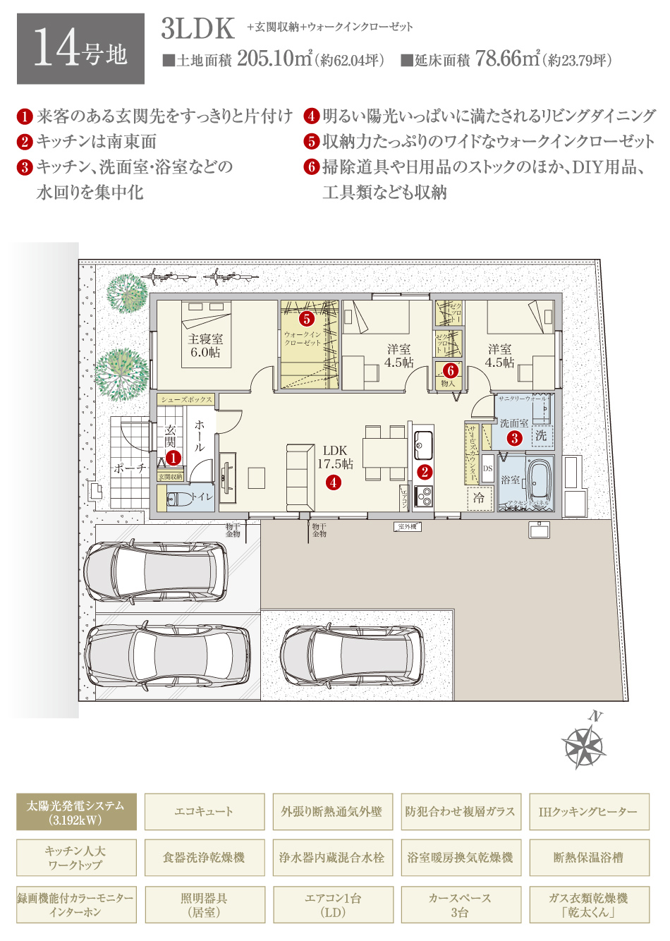 14号地 間取り 3LDK 価格 4190万円 建物面積 78.66 土地面積 205.1 -