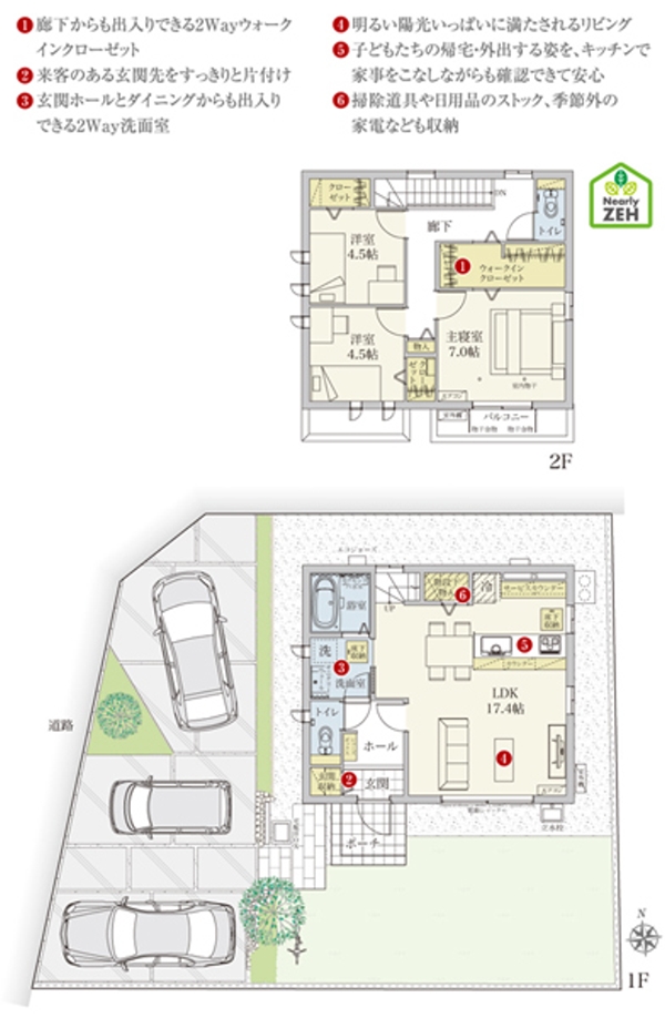 主寝室に繋がる3帖の2Wayウォークインクローゼットが日々の片づけをスムーズにしてくれます。