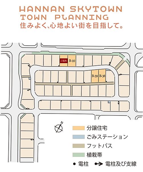 | 主たる設備の概要 | 電気:関西電力(他の小売電気事業者の選択も可能です)、ガス:都市ガス(B-10号地はオール電化の為なし)、水道:市営水道、下水:公共下水道 | 建築確認番号 | 第24WHEC確建大01955他 |