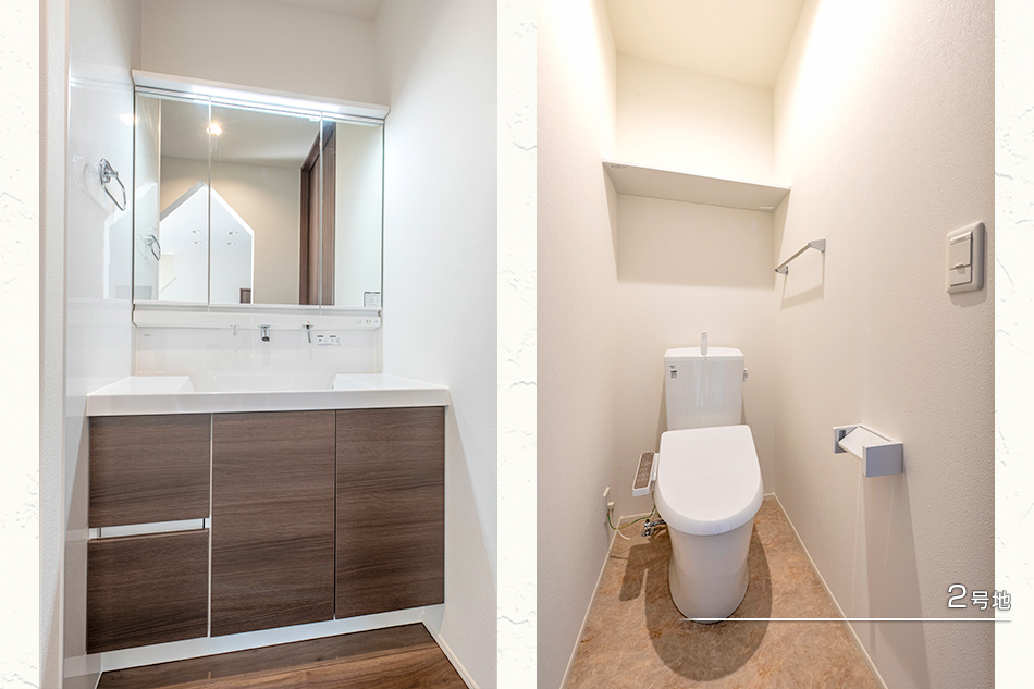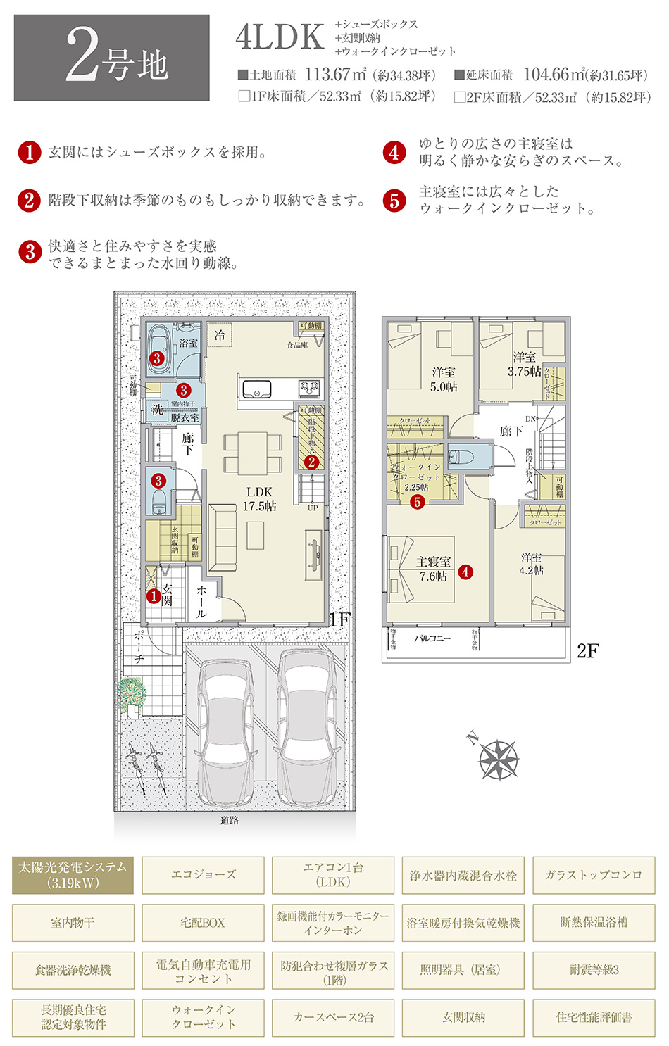 | 建物面積 | 104.66m2(2号地) | 土地面積 | 113.67m2(2号地) 私道負担なし |