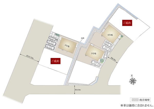 | 間取り | 3LDK(3号地、5号地、6号地) | 建物構造 | 軽量鉄骨2階建(3戸) |