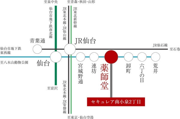 仙台市地下鉄東西線「薬師堂」駅 徒歩14分~14分 |