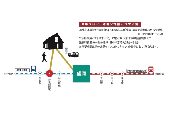 JR東北本線「岩手飯岡」駅 徒歩34分~35分 JR東北本線「盛岡」駅 徒歩68分~69分 |