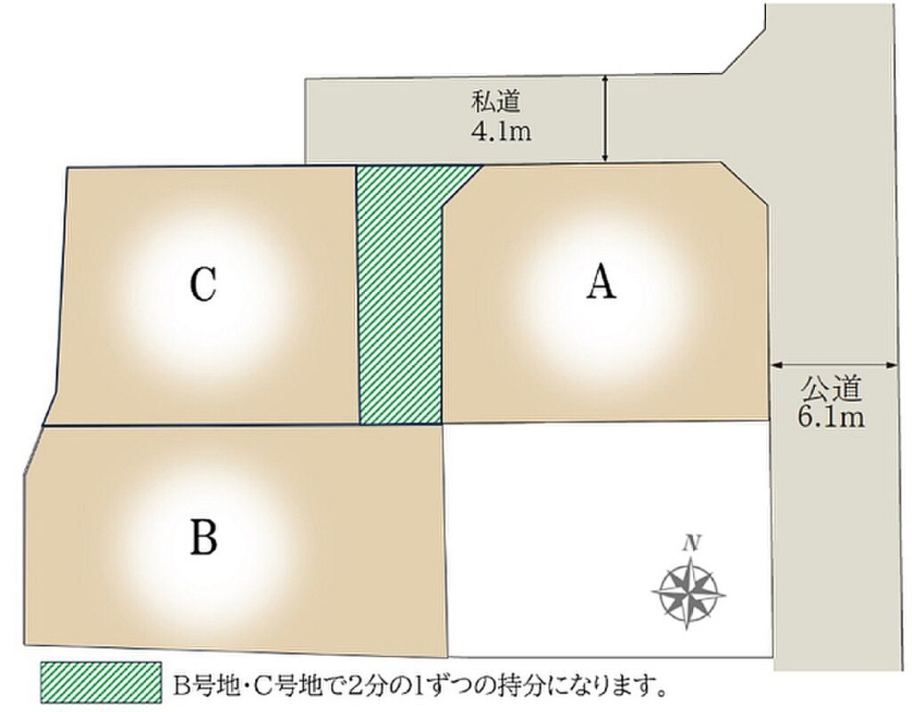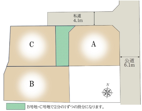 | 備考 | ※別途共有地(44番1)57.15m2があり、B号地・C号地で2分の1ずつの持分※防火指定/法22条区域 | ||