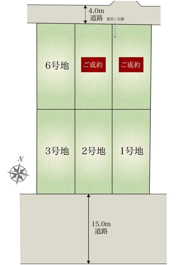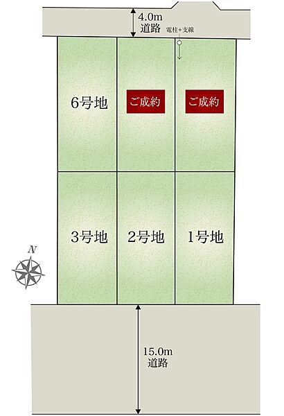 | 間取り | 3LDK(1号地、2号地、3号地)、4LDK(6号地) | 建物構造 | 木造2階建(4戸) |