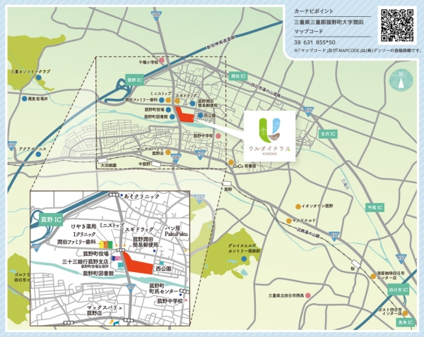 菰野町役場や菰野町図書館、マックスバリュ菰野店まで徒歩圏内の生活に便利な立地です。