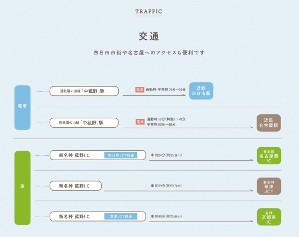 近鉄湯の山線「中菰野」駅 徒歩19分~20分 |