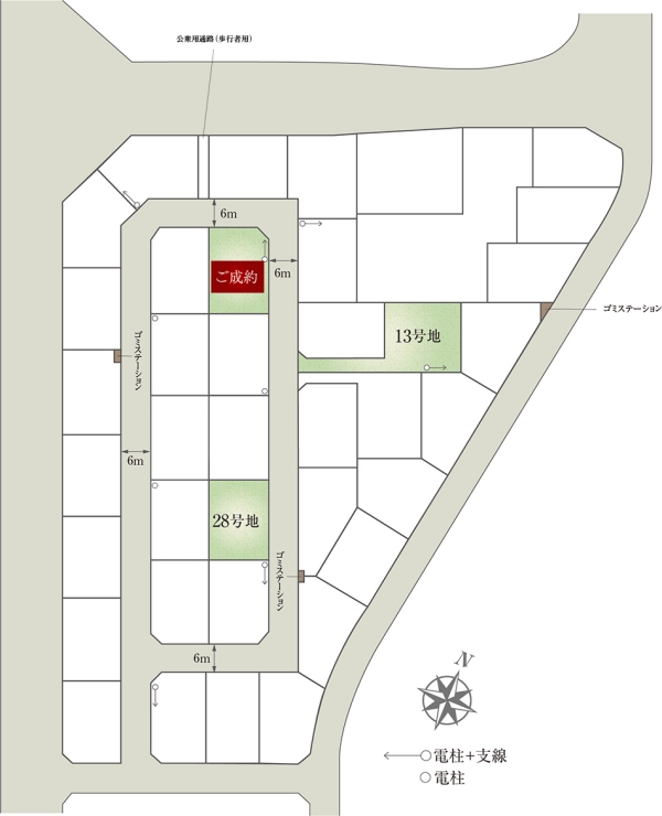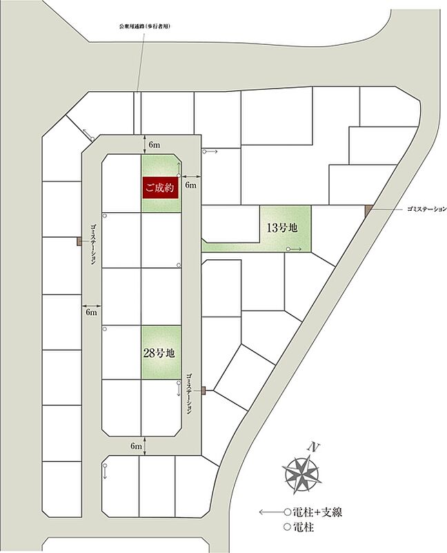 | 建物面積 | 86.69m2(13号地)、86.46m2(28号地) | 土地面積 | 263.80m2(13号地)、200.22m2(28号地) 全て私道負担なし |