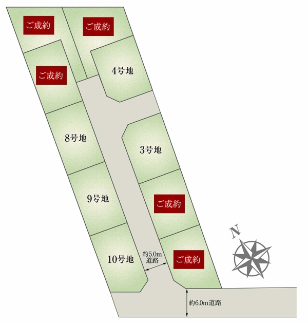 | 間取り | 3LDK(3号地、4号地、8号地、9号地、10号地) | 建物構造 | 軽量鉄骨2階建(5戸) |