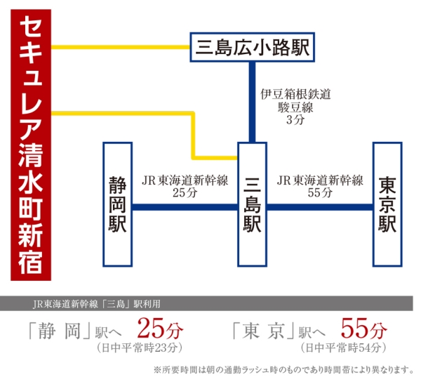 伊豆箱根鉄道駿豆線「三島広小路」駅 徒歩12分~12分 JR東海道本線「三島」駅 徒歩19分~19分 |