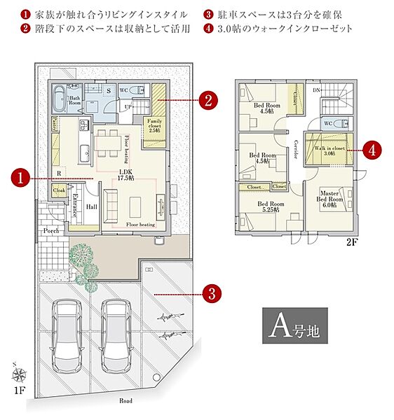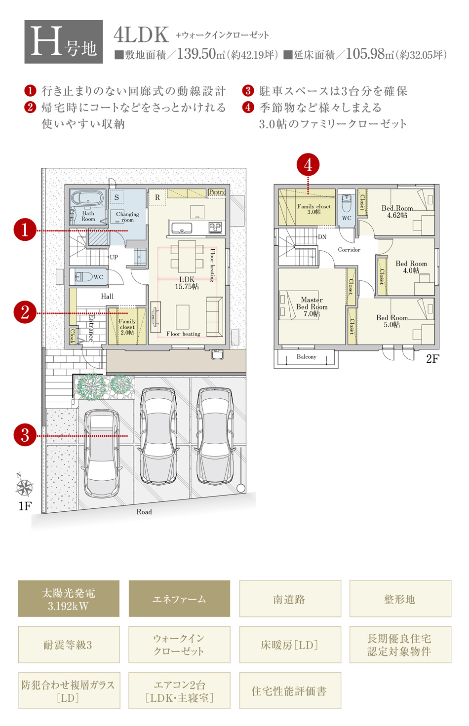| 間取り | 4LDK(A号地、E号地、H号地) | 建物構造 | 木造2階建(3戸) |