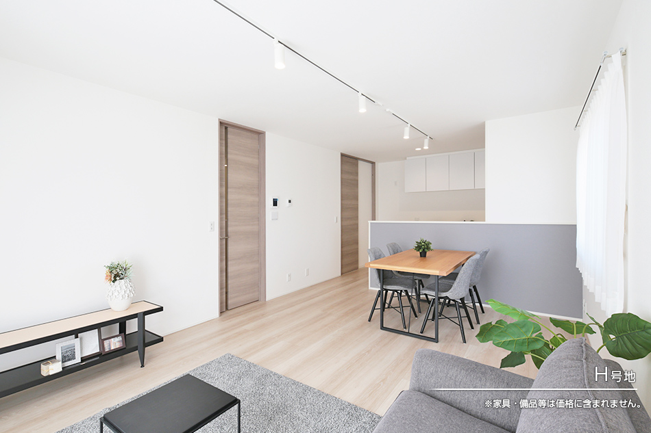 | 建物面積 | 102.68m2(A号地)、102.68m2(E号地)、105.98m2(H号地) | 土地面積 | 148.16m2(A号地)、138.99m2(E号地)、139.50m2(H号地) 私道負担なし |