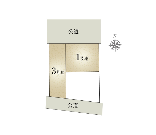 | 建物面積 | 96.89m2(1号地)、103.96m2(3号地) | 土地面積 | 117.28m2(1号地)、114.36m2(3号地) 全て私道負担なし |