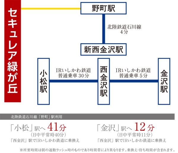 北陸鉄道石川線「野町」駅 徒歩25分~71分 JR北陸新幹線「金沢」駅 徒歩70分~71分 JR北陸新幹線「金沢」駅 徒歩70分~71分 |