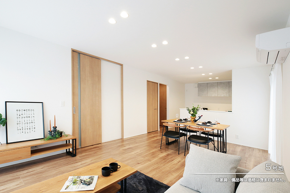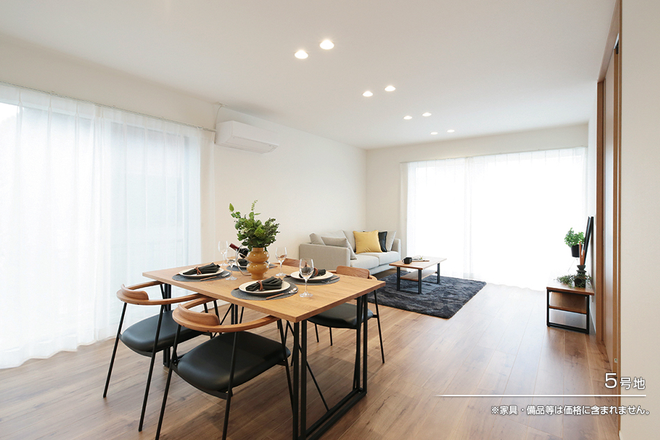 | 間取り | 3LDK(4号地、5号地) | 建物構造 | 軽量鉄骨2階建(1戸)、木造2階建(1戸) |
