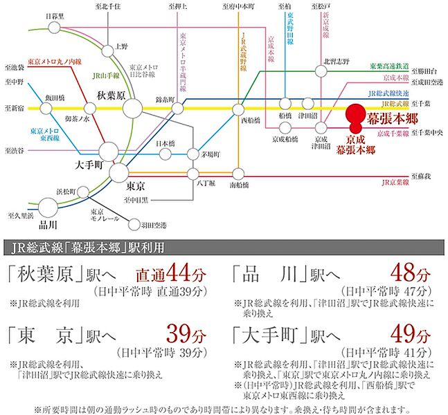 JR総武線「幕張本郷」駅 徒歩15分 京成千葉線「京成幕張本郷」駅 徒歩15分 JR総武本線「津田沼」駅 徒歩54分 |