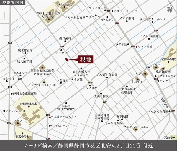 - ※地図上に表示される各種アイコンなどの情報は、おおよその所在地を表すものであり、物件・施設などの地点を保証するものではありません。