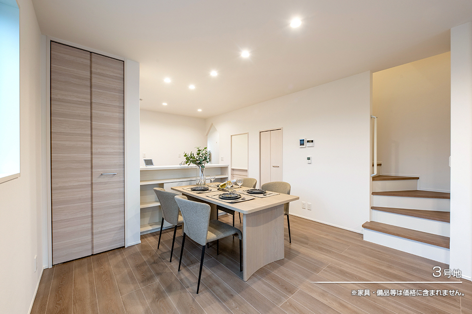 | 建物面積 | 103.96m2(3号地)、103.96m2(4号地) | 土地面積 | 131.94m2(3号地)、131.93m2(4号地) 全て私道負担なし |