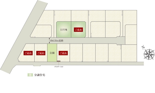 | 建物面積 | 90.42m2(11号地) | 土地面積 | 255.24m2(11号地) 私道負担なし |